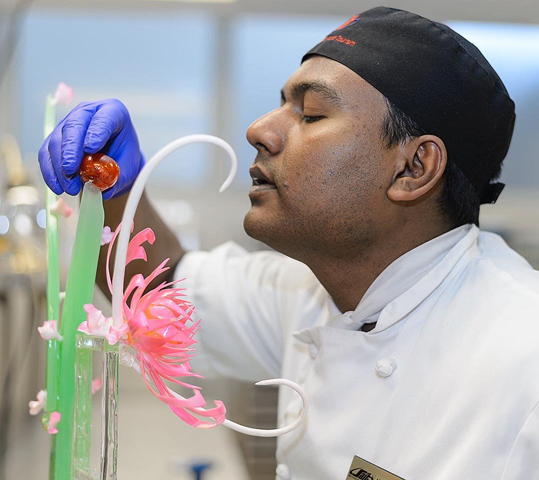<strong>The Cherry on Top: </strong>Waleed Sabur, a second-year baking and pastry arts student, cools off a cherry made of sugar during class in the basement of the John Ware Building in Calgary on Thursday, Feb. 16, 2017. Sabur, originally from Bangladesh, came to Canada to work but drove past SAIT one day and decided to pursue a career in his passion for baking. (Photo by Ashley Orzel/The Press)