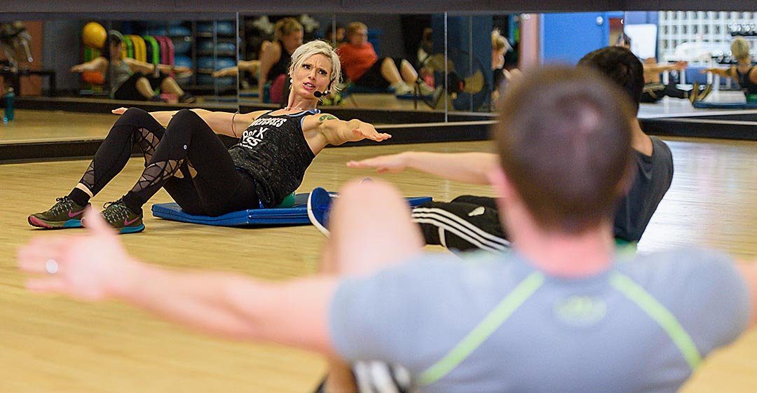 Fitness instructor, Kyra Page, demonstrates a set during the Wellness Centre's Lunch Crunch exercise program at SAIT in Calgary on Thursday, Feb. 16, 2017. Lunch Crunch is a half-hour long exercise program aiming to give a quick and intense workout to burn calories in a short amount of time. (Photo by Cyril Brabant/The Press)